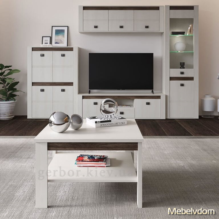 Фабрика Гербор-Холдинг (Украина) представила очередную новинку - модульнуюсистему для гостиной Селена (Selena). Эта мебель отличается строгими формами и сочетанием светлого корпуса (ясень снежный) и темных вставок (дуб ансберг темный). Все элементы можно купить отдельно. Система состоит из 10 модулей и включает в себя 3 варианта комодов, 2 ТВ-тумбы, витрину, шкаф комбинированный и 2 полки. Все это позволяет создавть различные композиции, соответствующие Вашим требованиям. Материал корпуса - ЛДСП. Фурнитура - Германия, Италия.