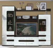 Все элементы системы мебели Соната представлены в цвете каштан.